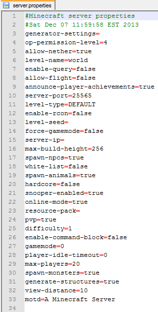 You can also edit the server.properties file to change things like the maximum number of mods can make any minecraft game fun or easier and with all the work that you've just put into. Creating a minecraft server is a lot easier 2. Your lan world will have to utilize the file's settings. When editing server.properties it is important that the same structure as the original is used, although the order of the lines is arbitrary. Server.properties is the file stores all the settings for a multiplayer (minecraft or minecraft classic) server.